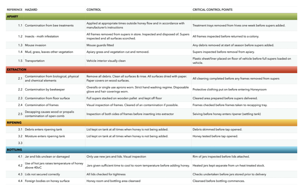 - Food hygiene & safety procedure – accepted good practice for beekeepers;