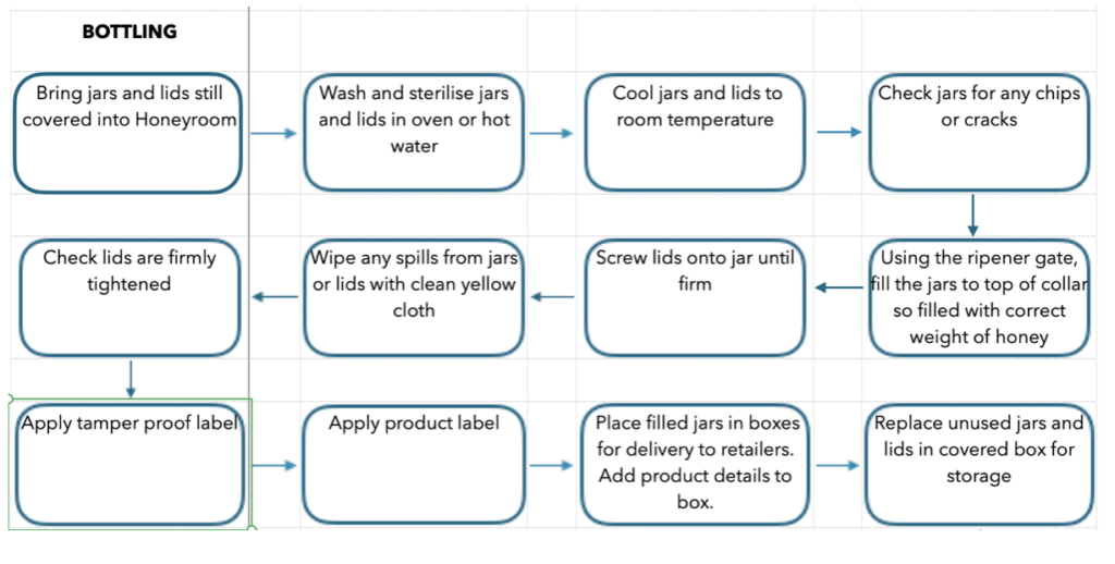 The discussion during her visit focussed on the bottling process but I guess the Inspector was reassured by the process of extraction and honey ripening I had recorded in the flow charts.