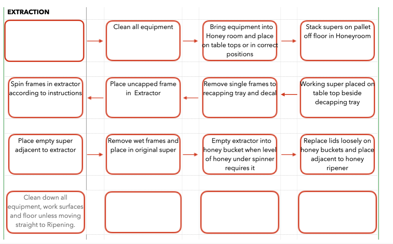 - Keep a record of the honey extracted (dates and amount) and show how you can link this to a lot number and honey sales.