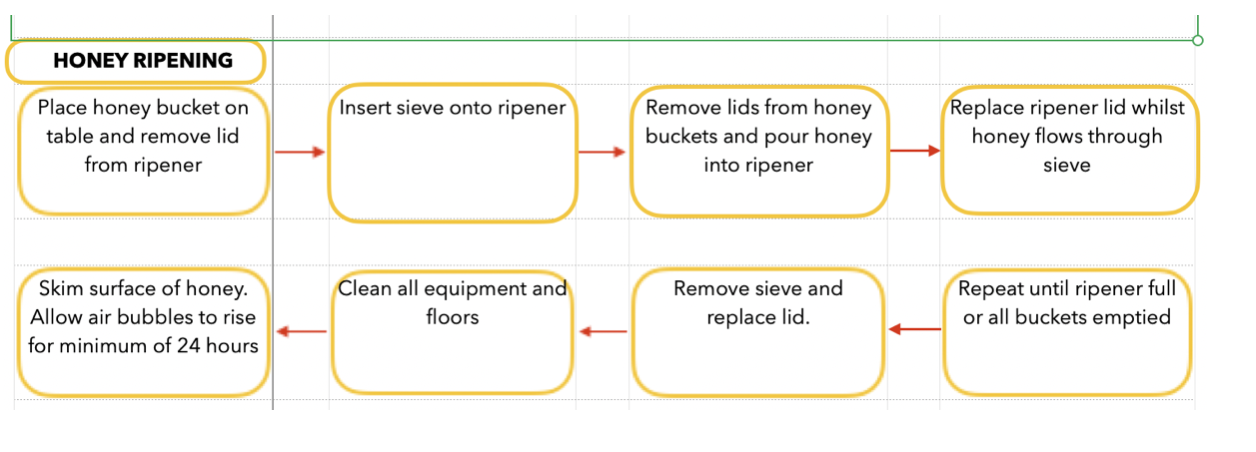 The discussion during her visit focussed on the bottling process but I guess the Inspector was reassured by the process of extraction and honey ripening I had recorded in the flow charts.